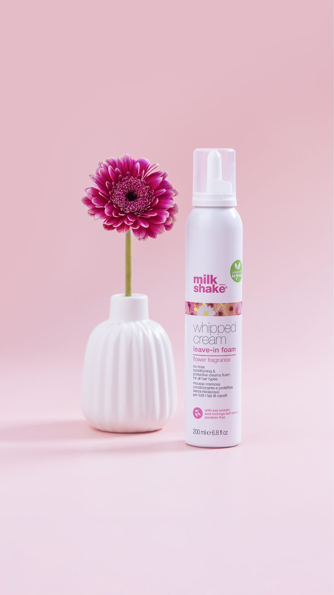 Mousse soin et protection sans rinçage après shampooing aux proteines de lait qui renforcent et nourrissent la fibre capillaire. Pour cheveux coloré. Fragrance flower